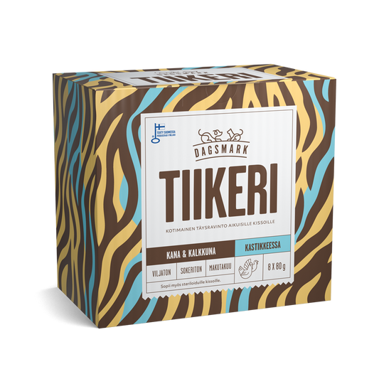 UutuusLoppuunmyytyCollectionKotimaiset kissan märkäruoatDagsmark TIIKERI kana-kalkkuna kastikkeessa | SÄÄSTÖLAATIKKO